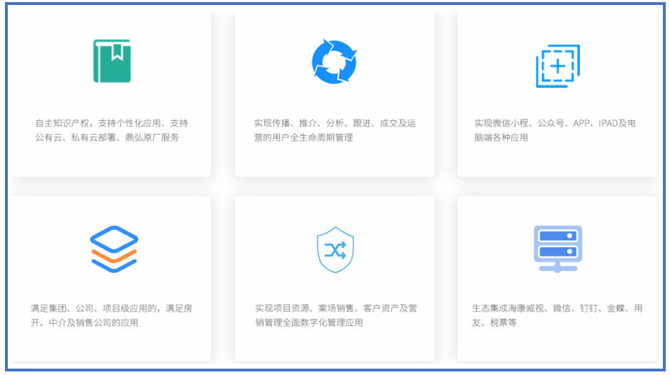 鼎弘云通过客户需求为原点,以市场洞察为前提,运用技术应用、管理变革、组织优化等手段,打造房企数智运营管理平台,贯穿客户全生命周期,不断增强房企在“增效降本”方面的核心竞争力,同时,持续构建开放共享的数智系统,推动房企产业升级。